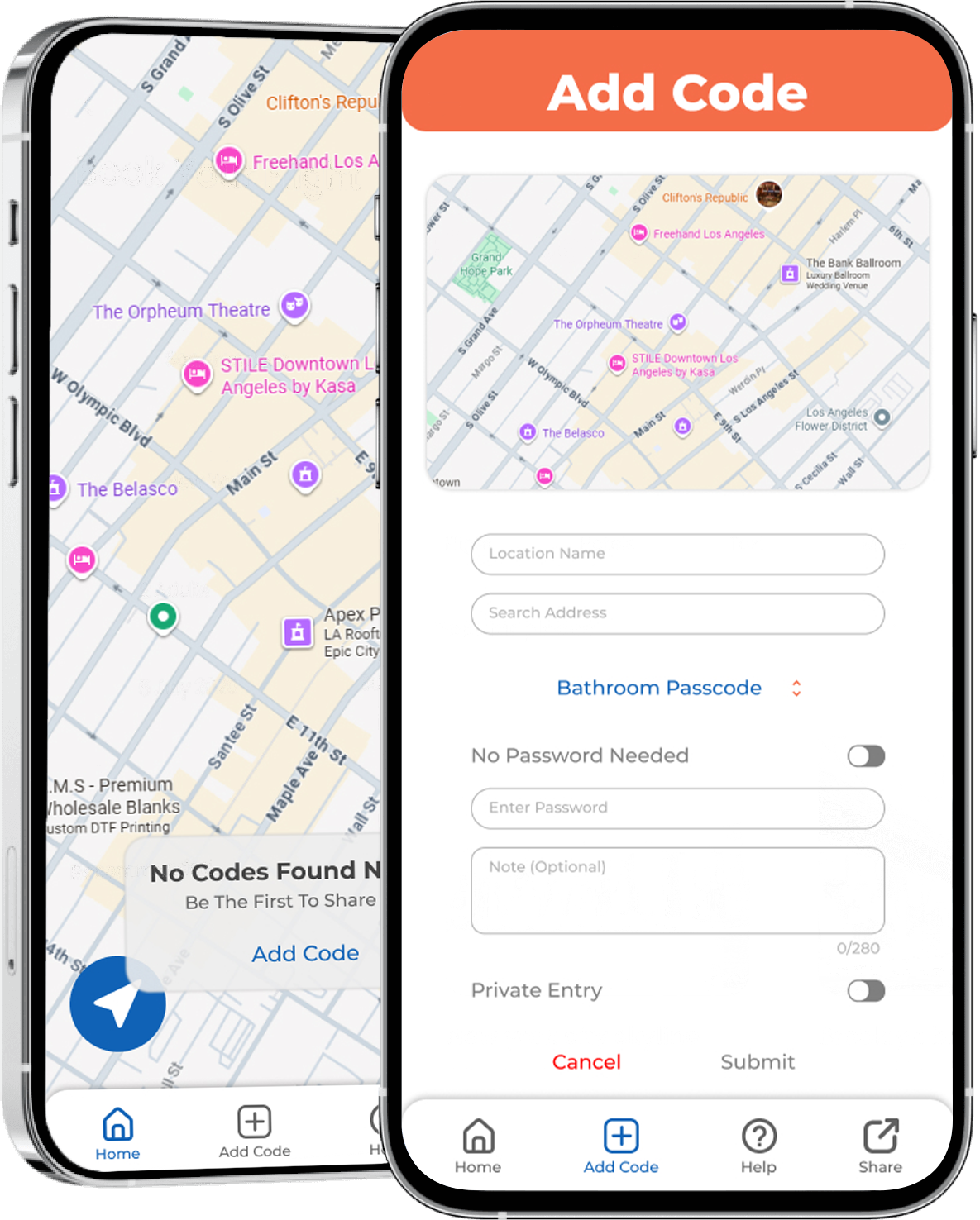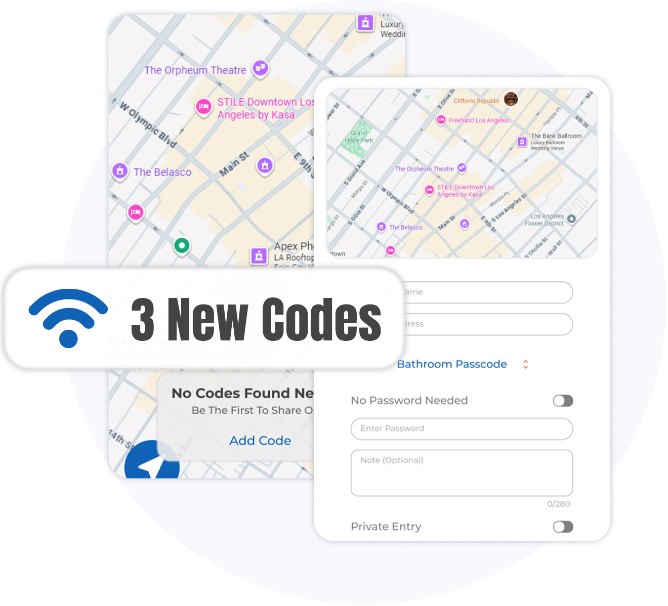 Open the app and instantly view bathroom or Wi-Fi codes shared by others.